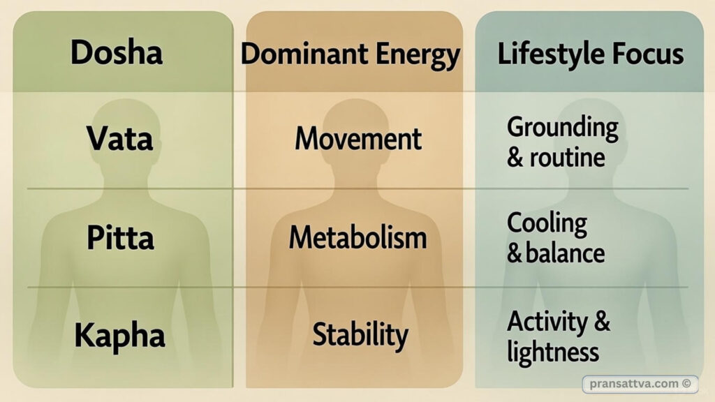 ๐ฟ Dosha-Wise Daily Lifestyle Comparison Table